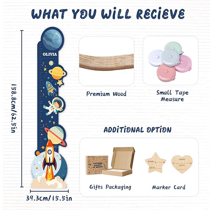 Personalized Name Growth Chart for Wall, Space Height Measurement for Wall, Children Height Chart Ruler, Portable 3D Removable Growth Chart, Wall Height Measurement for Kids