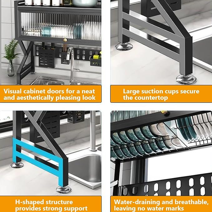 - Premium Materials, Durable & Rust-Resistant:Crafted from high-quality, durable materials, the drying rack kitchen over sink has a stable structure, allowing this over the sink dish drainer drying rack to easily hold heavy dishes. Its rust-resistant coating extends its service life, making it a reliable daily kitchen storage and drying solution.