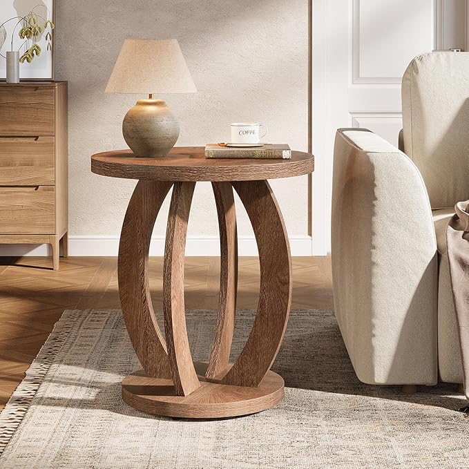 - Large Round Accent Table: The enlarged table (23.62") provides more space for display. Rounded edge design can prevent potential damage. Round open shelf design for easy access and storage