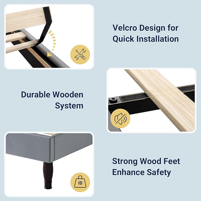 - No Box Spring Needed: With velcro wooden slats provide even easily assembled, also to prevent your mattress from slipping, provide reliable support for your mattress without the need for a box spring. Weight capacity: 800 Lbs.