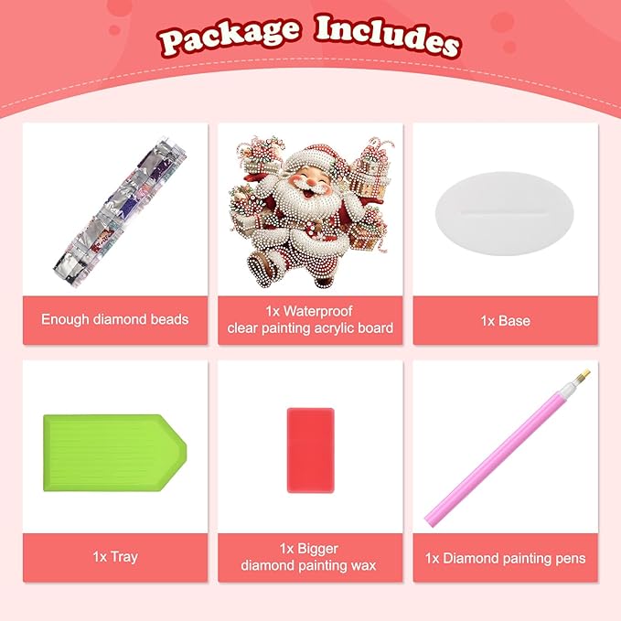 - What You’ll Receive: Includes waterproof clear painting acrylic board x1, base x1, diamond pen x1, tray x1, wax pad x1, plenty of diamonds, and a beautiful box—everything you need to start your diamond art project