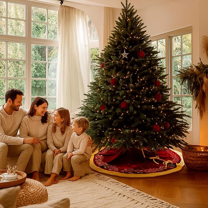 - Generous Size and Full Coverage: with a 48 inch diameter, ideal for 5ft to 7ft Christmas tree, this burgundy tree skirt provides ample coverage for gifts while hiding unsightly tree stands and electrical cords, ensuring a polished and cohesive look around the base of your tree, also serving as a playful area for pets to explore under the tree, complementing your festive decorations beautifully