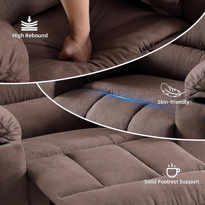 - Premium Comfort: Crafted with durable fabric and thick high-density sponge cushions, this recliner offers superior support. The high-resilience foam molds to your body for long-lasting comfort.