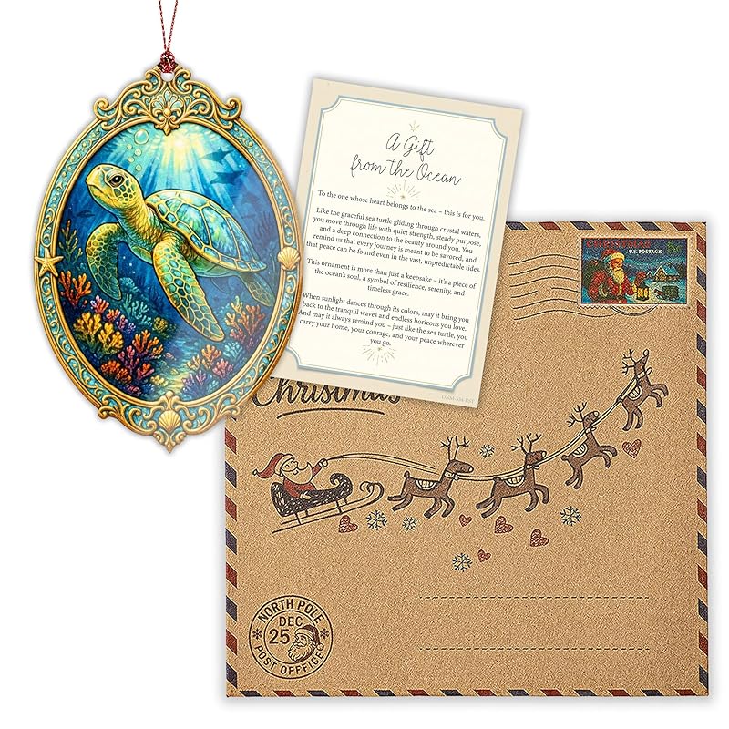 Turtle gifts, turtle gifts for women, sea-turtle decor, turtles, Beach themes, Christmas ornament 2025, Suncatcher Effect stained glass window hanging, car hanging accessories