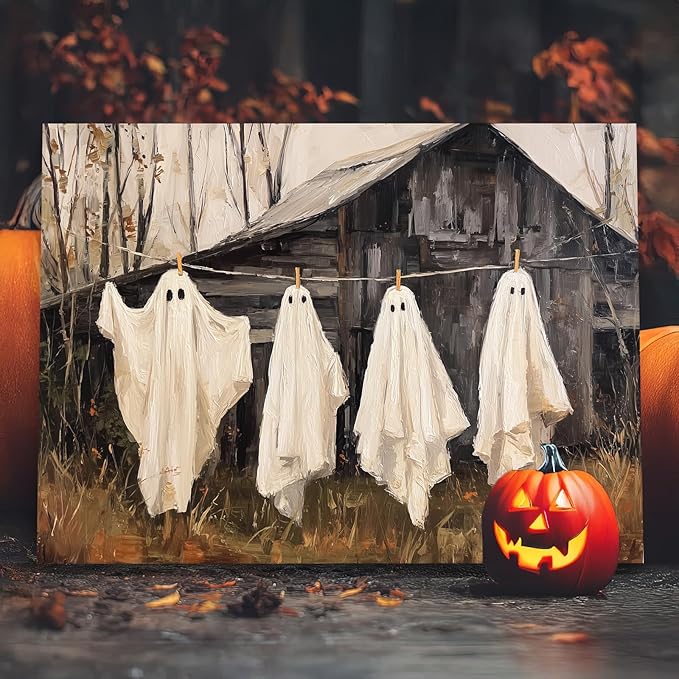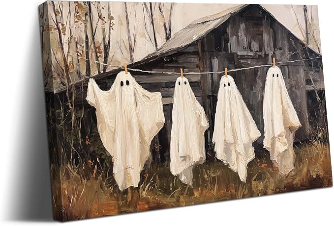 - Easy to Display: The cute ghost wall art have a hanging kit, and hang it on the wall as soon as you receive it. This modern wall art print is the ideal choice for vintage Halloween decorations