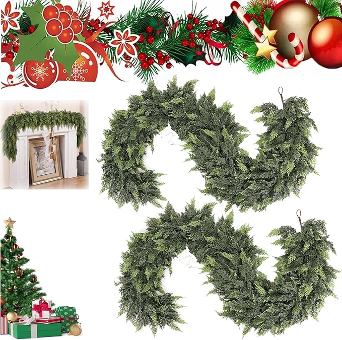 - 【Lush, Thick & Realistic Feel】Crafted with high-quality materials, this cedar pine needles garland offers an ultra-soft, lifelike texture that feels like genuine cedar. The full, dense foliage drapes beautifully, adding a fresh and festive atmosphere to your home, whether displayed on a mantel or hung across walls