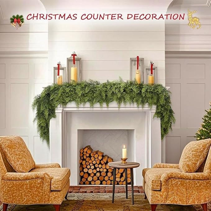 - 【Lush, Thick & Realistic Feel】Crafted with high-quality materials, this cedar pine needles garland offers an ultra-soft, lifelike texture that feels like genuine cedar. The full, dense foliage drapes beautifully, adding a fresh and festive atmosphere to your home, whether displayed on a mantel or hung across walls