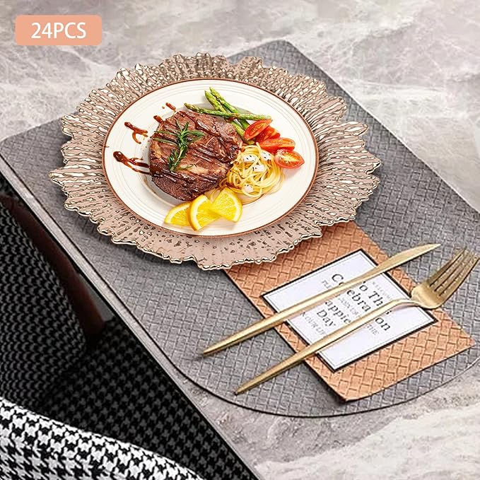 - 【Exquisite Charger Plates Set】The decorative plates are made of quality plastic material with fine workmanship and textured surface, lightweight and sturdy, washable and reusable, and will not break or fade easily, which can be applied for a long time.