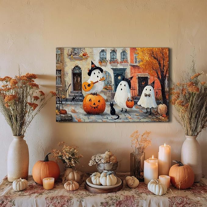 - This cute ghost canvas captures the joy of autumn's arrival. Bring this cute ghost canvas wall art into your home, and it will add a unique touch of color to your living space