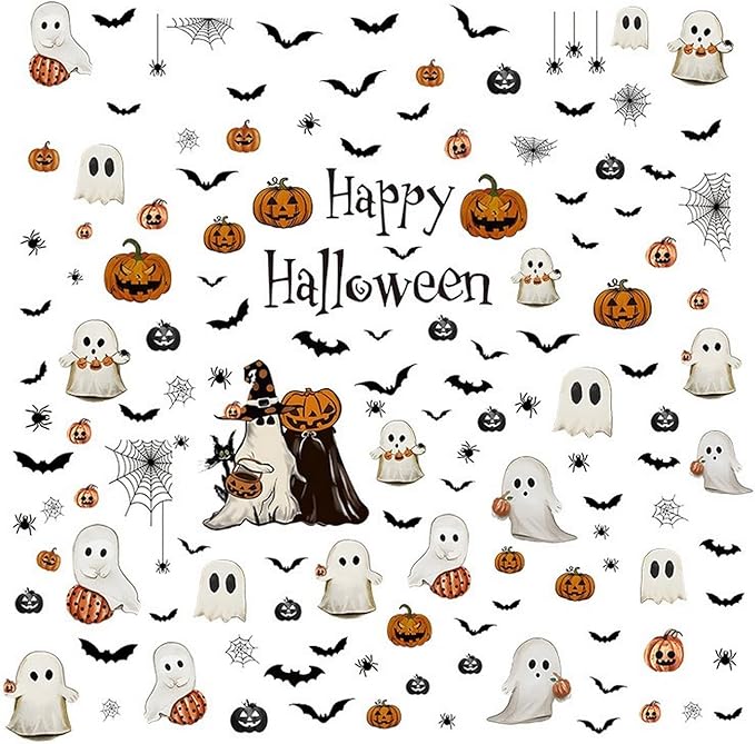 Halloween Ghost Window Clings for Glass 6 Sheets Cute Window Decals Spooky Window Stickers Pumpkin Spider Windows Cling for Halloween Fall Party Home School Office Glass Supplies Decorations